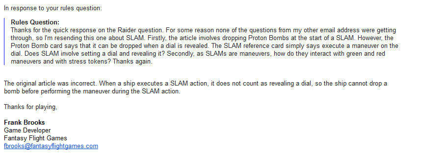While this is (and remains) a useful tool to get out of a tight spot, FFG’s previews mostly emphasised the SLAM action as a way to drop bombs and ordenance on your opponent.