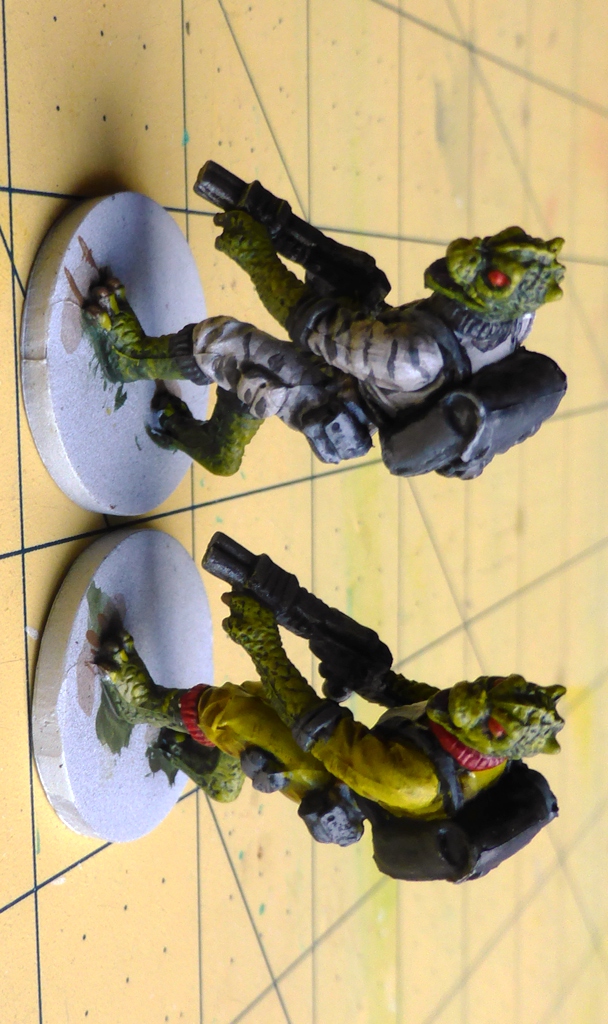 Continuing with my project of painting up Fantasy Flight Games‘ Imperial Assault, I started working on the Trandoshan Hunters, whose most notorious representative is the Bounty Hunter Bossk from The Empire Strikes Back.