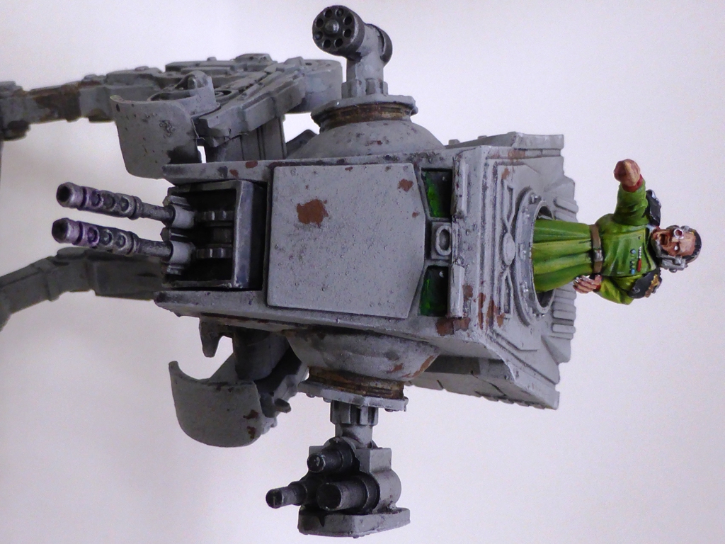 - I also painted the cockpit windows with layers of Warpstone Glow, Moot Green and Gauss Blaster Green, along with a little bit of black and a white highlight dot.