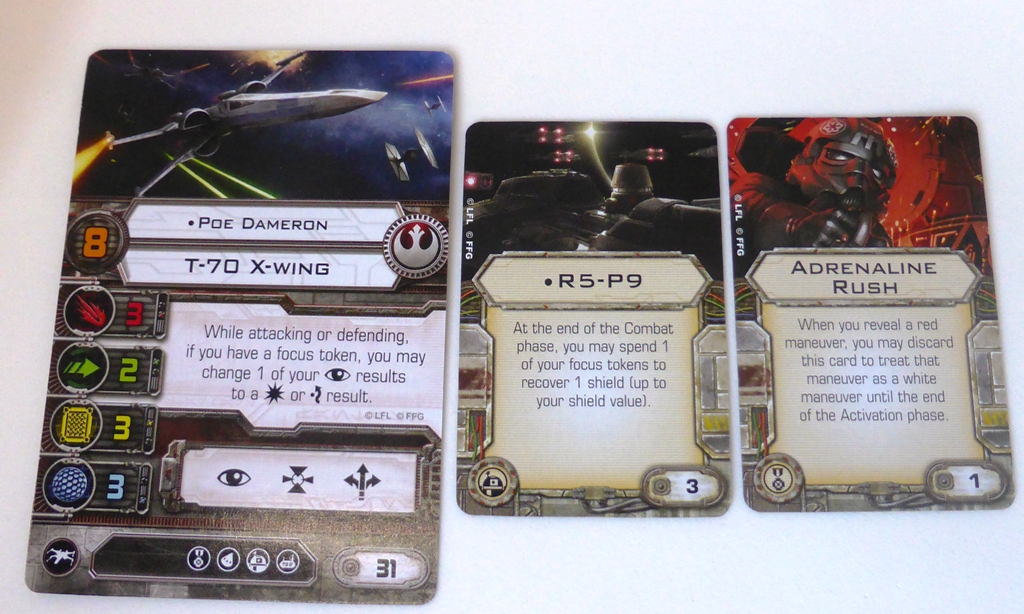 - Poe Dameron (T-70 X-Wing) with R5-P9 and Adrenaline Rush (35 pts)