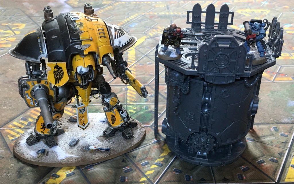 Great piece of terrain. Below you can also see some size comparisons with a Drop Pod and with an Imperial Knight.