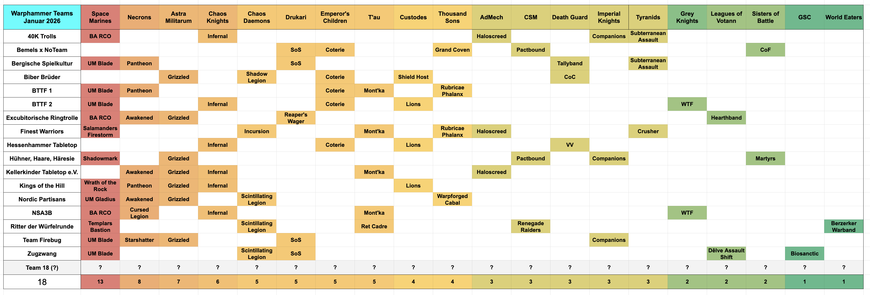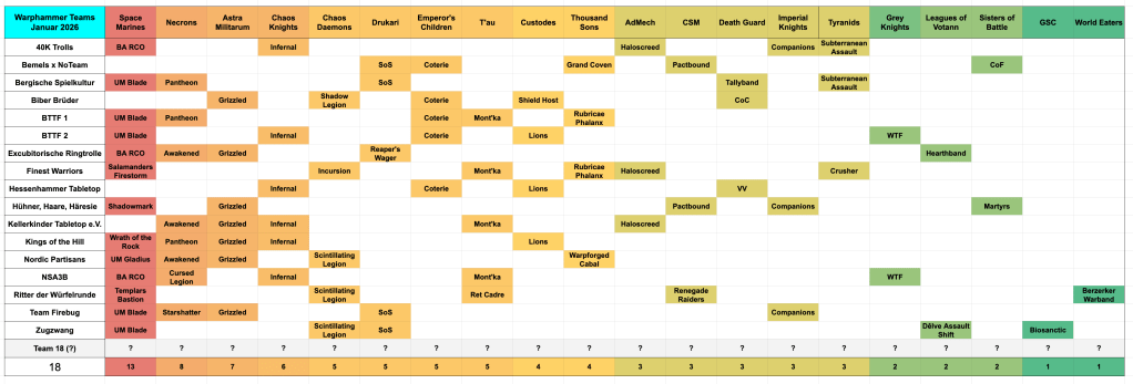 A little overview of what is played at the Warphammer Teams TTS tournament in Germany as we enter 2026 and the home stretch of 10th Edition Warhammer 40K (presumably).